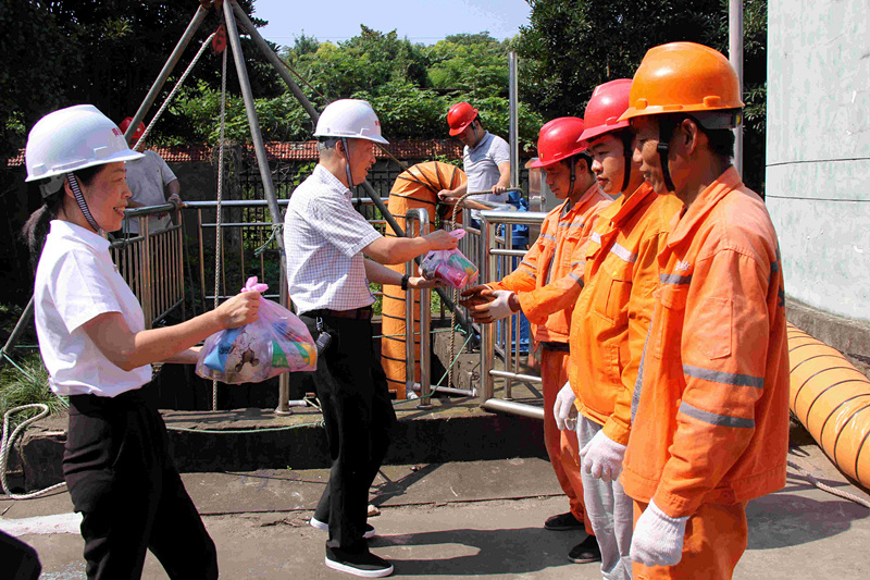 市領導奚明、諸曉蓓等分組走訪集團所屬排水公司和天然氣公司開展高溫慰問。