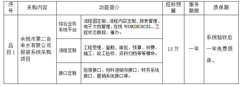 余姚市第二自來水有限公司報裝系統采購項目招標公告