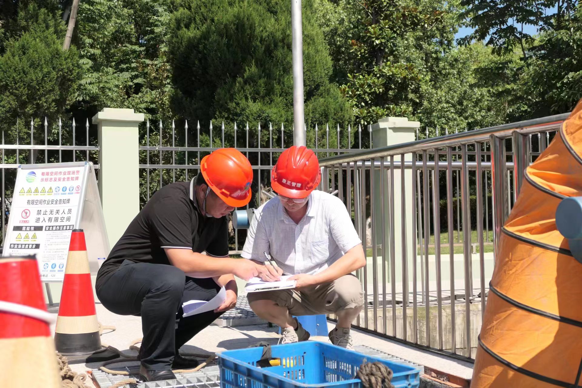 市排水公司制定《有限空間作業風險等級標準》后在濱海2號泵站首次進行實際操作。施工人員在縱深達12米的水泵底座進行檢查時,泵池上方,第三方保險人員進行全程氣體檢測,運行監察部的監察員對有限空間作業的各個流程進行重點監管。