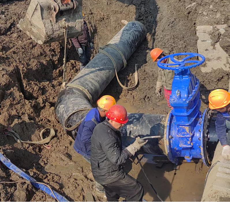 該聯通工程位于余姚大道小曹娥高速收費站西側,于1月27日8時開始施工,歷時37小時的施工完成了25米DN800新建管道的鋪設和接頭作業。該工程通水后,一方面可以進一步提升小曹娥鎮水質、水壓的穩定性,另一方面有利于織密城鄉供水一張網。