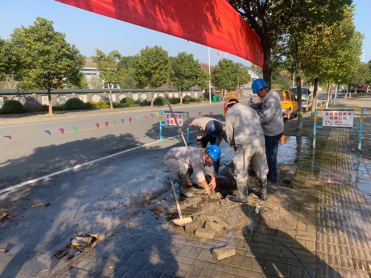 預演由該公司安全生產領導小組成員、管網運行部、辦公室、調度中心、中心化驗室等部門共同完成,在北濱江路(城東水廠門口)南側進行了DN300給水管道爆管搶修全過程的應急預案演練。